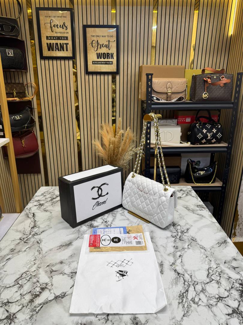 • Chane_l Quilted Rue Classic Flap Bag With Box And Dust Bag (1112-White)