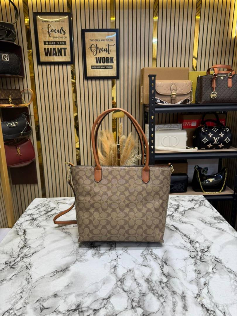 • Coac_h Signature Monogram Tote Bag With Cherry Charm (Brown) (6369)