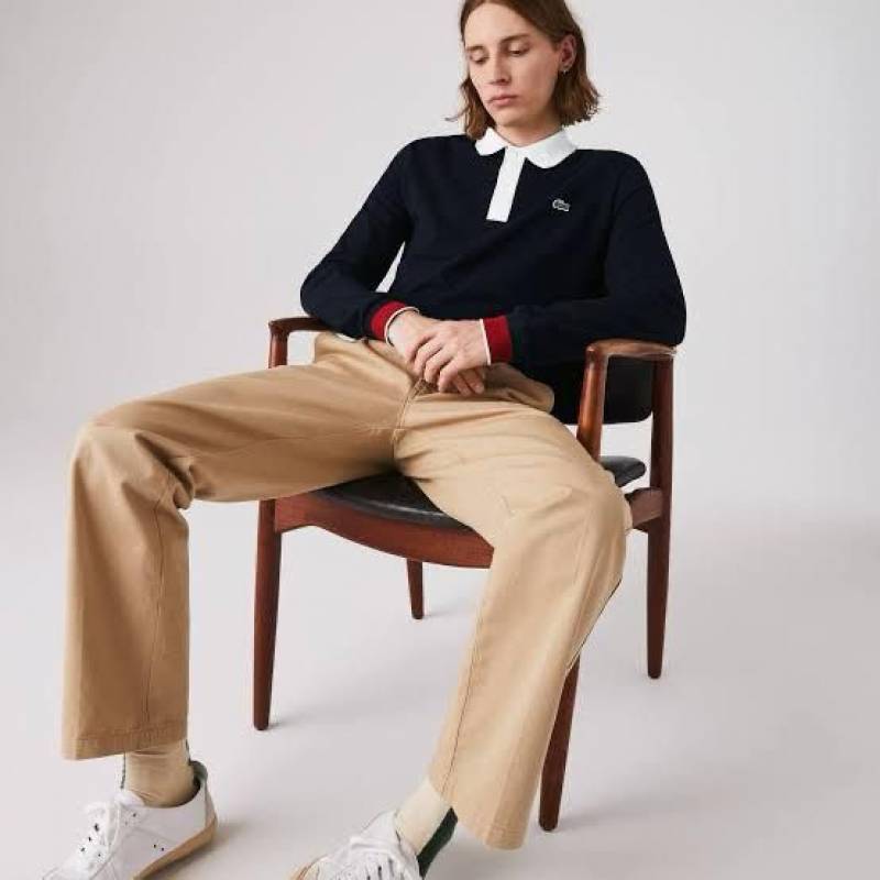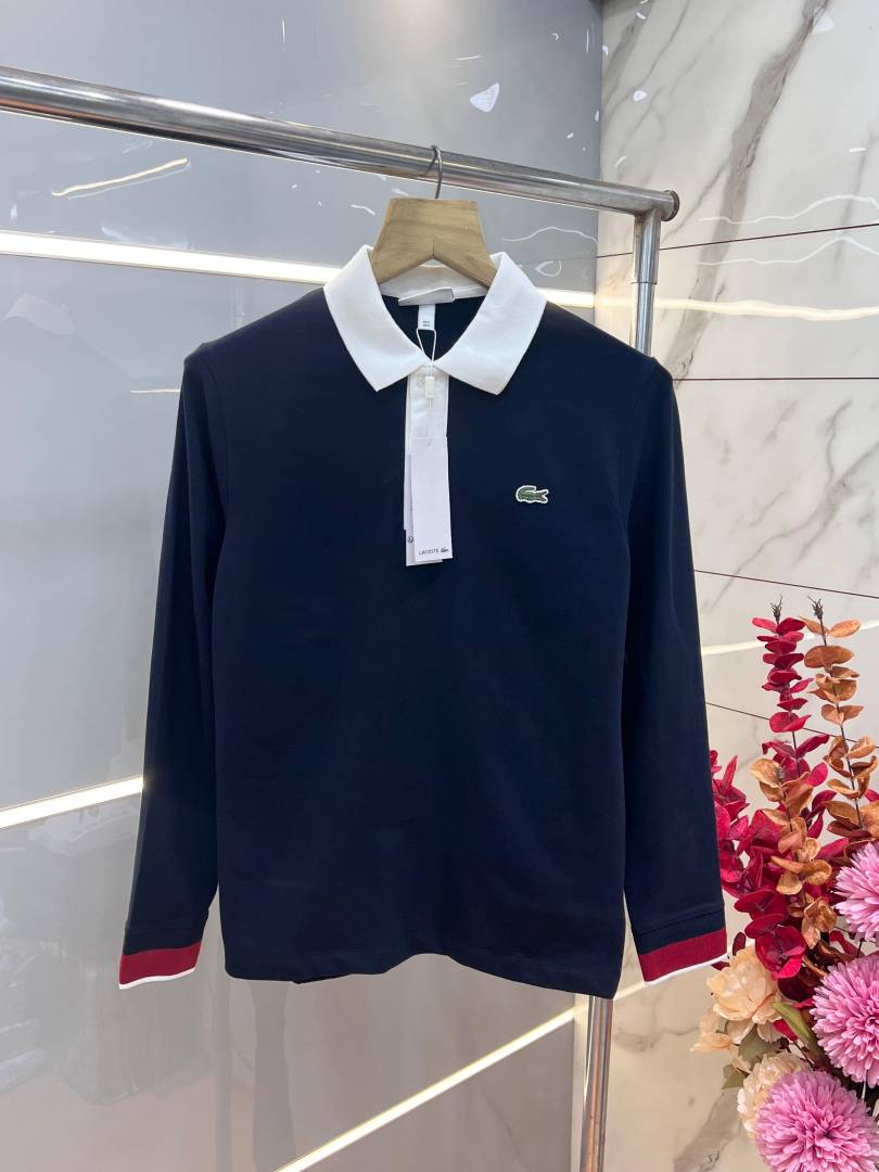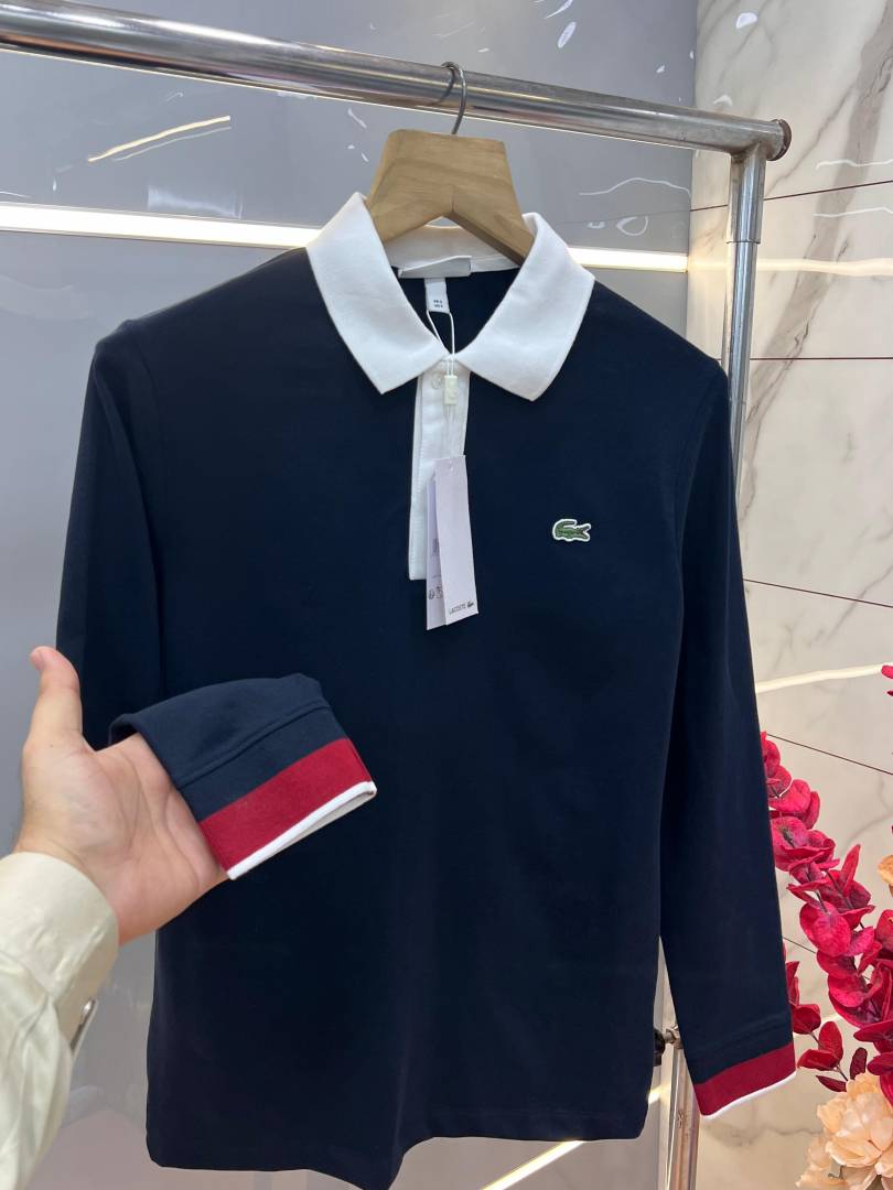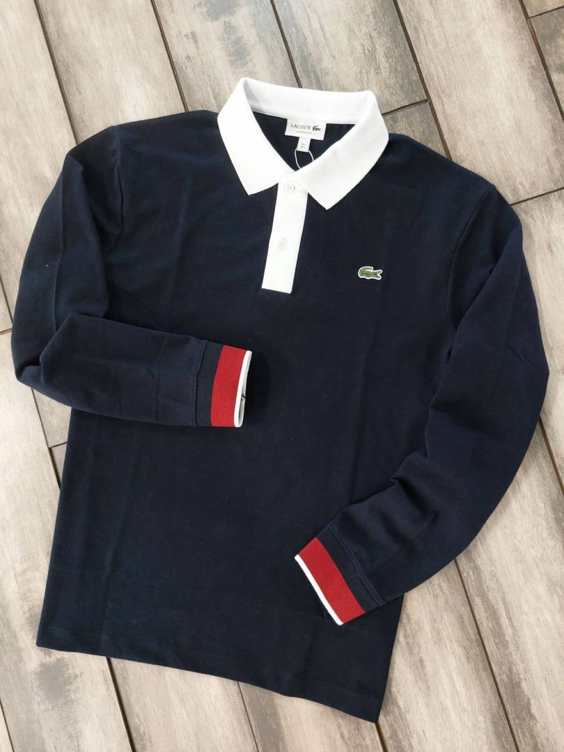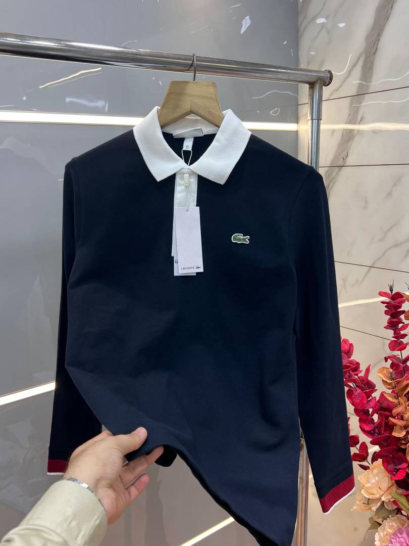 Lacost e Navy Premium Cotton Lycra Pique fabric Polo Full Sleeves Tshirt with Front Design and Embroidered Logo 3106F